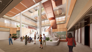 The building’s customisable floor plates will integrate state-of-the-art labs, cleanrooms, assembly space interlinked with offices, and communal spaces designed to foster collaboration and connection. The ground floor will house an incubator for early-stage businesses. Other shared facilities include a café and bar, a feature forum stairway and atrium, a multi-faith room, mothering room and ride-in bike storage and workshop.