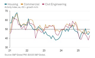 Tim Moore, economics director at S&P Global Market Intelligence, which compiles the monthly PMI survey, said: “September data suggested that the UK construction sector faced pressure on multiple fronts as residential, commercial and civil engineering work all continued to decrease at solid rates. Lower volumes of overall construction output have been recorded since January, although the latest reduction was the slowest for three months and the downturn in new orders was the softest so far in 2025.