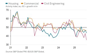 Tim Moore, economics director at S&P Global Market Intelligence, said: “UK construction companies reported another challenging month in October as the prolonged weakening of order books so far in 2025 resulted in the fastest decline in business activity for over five years. Civil engineering and residential activity saw the fastest rates of contraction, while commercial building showed some resilience.