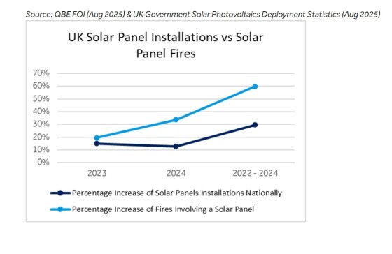 In 2024 the UK fire services tended to 1,330 lithium-ion battery fires. QBE said that it expects that, as lithium-ion battery use expands, battery units could soon become a leading source of fires linked to solar panel systems.